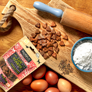 Baked in the rolling hills of England, our tasty little Love Heart Treats are the perfect way to show your dog some love.