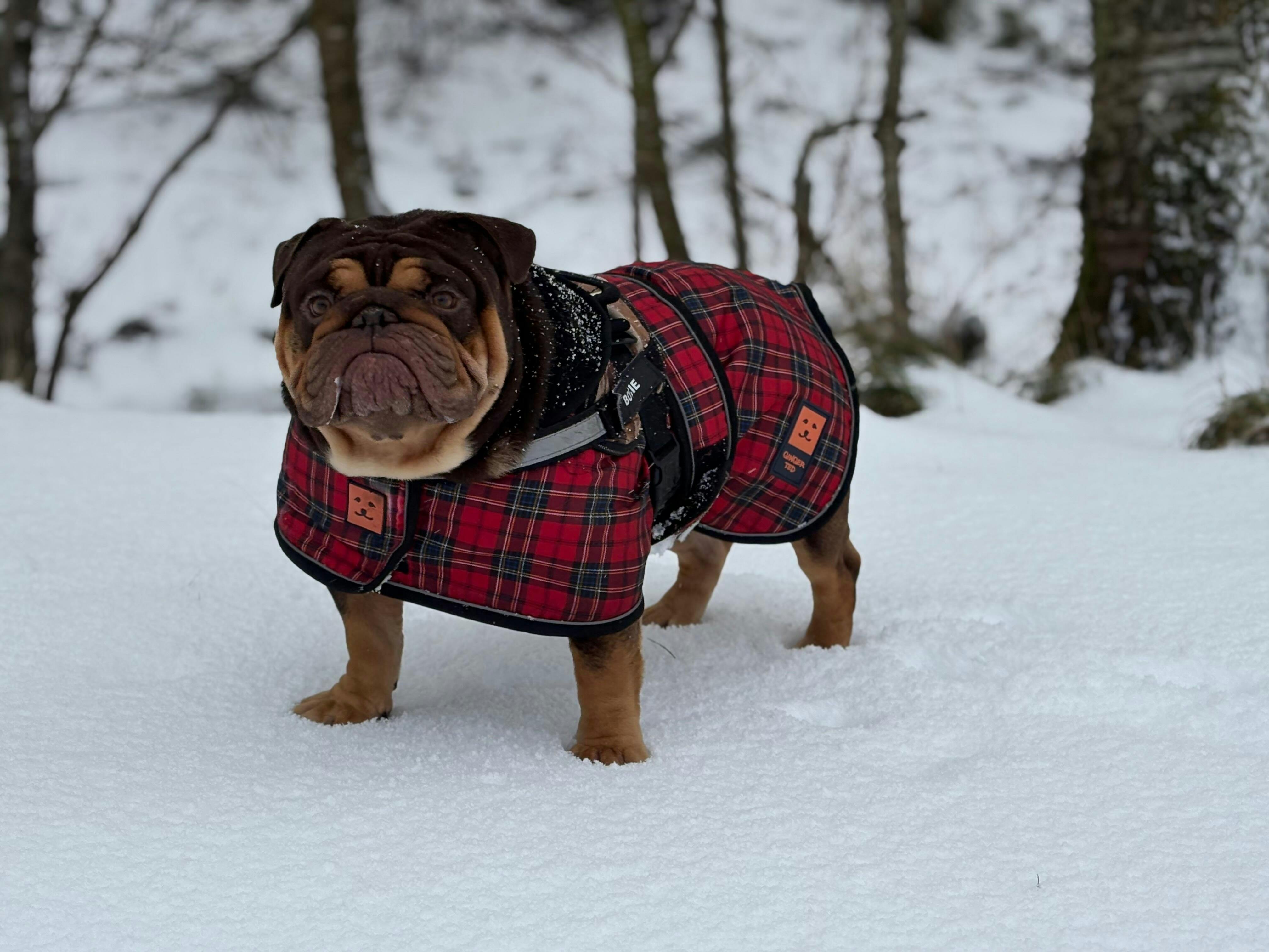 Our waterproof Bulldog coat is a superb all-round comfortable coat designed to keep your dog dry, warm and clean. Made from a coated polyester outer fabric which is waterproof, windproof, breathable and washable. The coat is lined with warm fleece and features adjustable front, harness slot and body/belly straps together with reflective piping. Other features include a fold-back high-neck wither flap and lead slot. The coat is designed to fit Bulldogs, Frenchies, Bull Terriers and other medium sized barrel chested breeds.