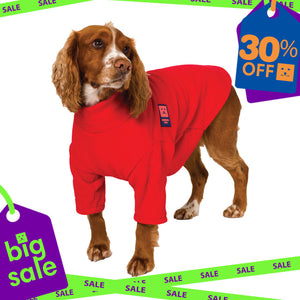 The fleece material is very breathable and has high wicking properties designed to draw any moisture away from the animal’s body. The overall design covers the majority of the dog’s body yet still provides a high level of freedom.