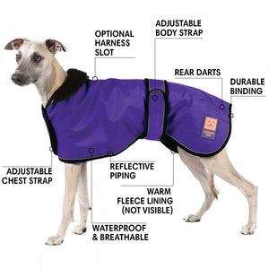 The coat is designed to fit the majority of Sighthounds such as Greyhounds, Whippets, Lurchers, Salukis and similar cross breeds.