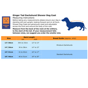 Our waterproof Dachshund coat is a superb all-round comfortable coat designed to keep your dog dry, warm and clean. Made from a coated polyester outer fabric which is waterproof, windproof, breathable and washable. The coat is lined with warm fleece and features adjustable front and body/belly straps together with reflective piping. Other features include a fold-back high-neck wither flap and lead slot. The coat is designed to fit the majority of miniature and standard Dachshunds and other similar breeds. If you are using a shoulder harness we can add a slot to the back of the coat. Please click on the "Add a Shoulder Harness" box.